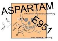 Аспартамът е вторият популярен подсладител, който се влага в много продукти и напитки: безалкохолни напитки, горещ шоколад, дъвки, бонбони, млека, витамини, лекарства против кашлица и др. Той е 160-200 пъти по-сладък от захарта, няма миризма и добре се разтваря във вода. Не бива да се бърка аспартамът с „аспартата”, който е аспарагинова киселина или нейна сол. Аспартамът се отбелязва с индекса Е951; в организма на човека се разпада на метанол и две протеиногенни аминокиселини: аспарагинова и фенилаланин. Метанолът е отрова, която действа на нервната и съдовата система в организма. Токсичното му действие е обусловено от т.нар. летален синтез – метаболитното окисление в организма и образуването на отровния формалдехид. Ако се приемат вътрешно 5-10 мл метанол, човек получава тежко отравяне; едно от вероятните му последици е слепотата, а ако приеме 30 мл и повече, може да настъпи смърт. По времето на опити на животни били давани различни дози аспартам; повечето развили тенденция да заболеят от онкологични заболявания, включително лимфома, левкемия и тумори на много органи. Според изследователите причината за това е един от метаболититие на аспартама – метанола, който в процеса на обмяната на веществата се превръща във формалдехид. И метанолът, и формалдехидът са канцерогени. Фенилаланинът според учени нарушава химическите процеси в мозъка, намалява нивата на някои ключови мозъчни химически съединения като серотонина, което влияе върху настроението, поведението, съня, апетита и др. Според тях фенилаланинът нарушава метаболизма на аминокиселините, функциите на нервите и хормоналния баланс в организма. Опити еднозначно доказват, че аспартамът разрушава нервните клетки, което може да доведе до болестта Алцхаймер.
